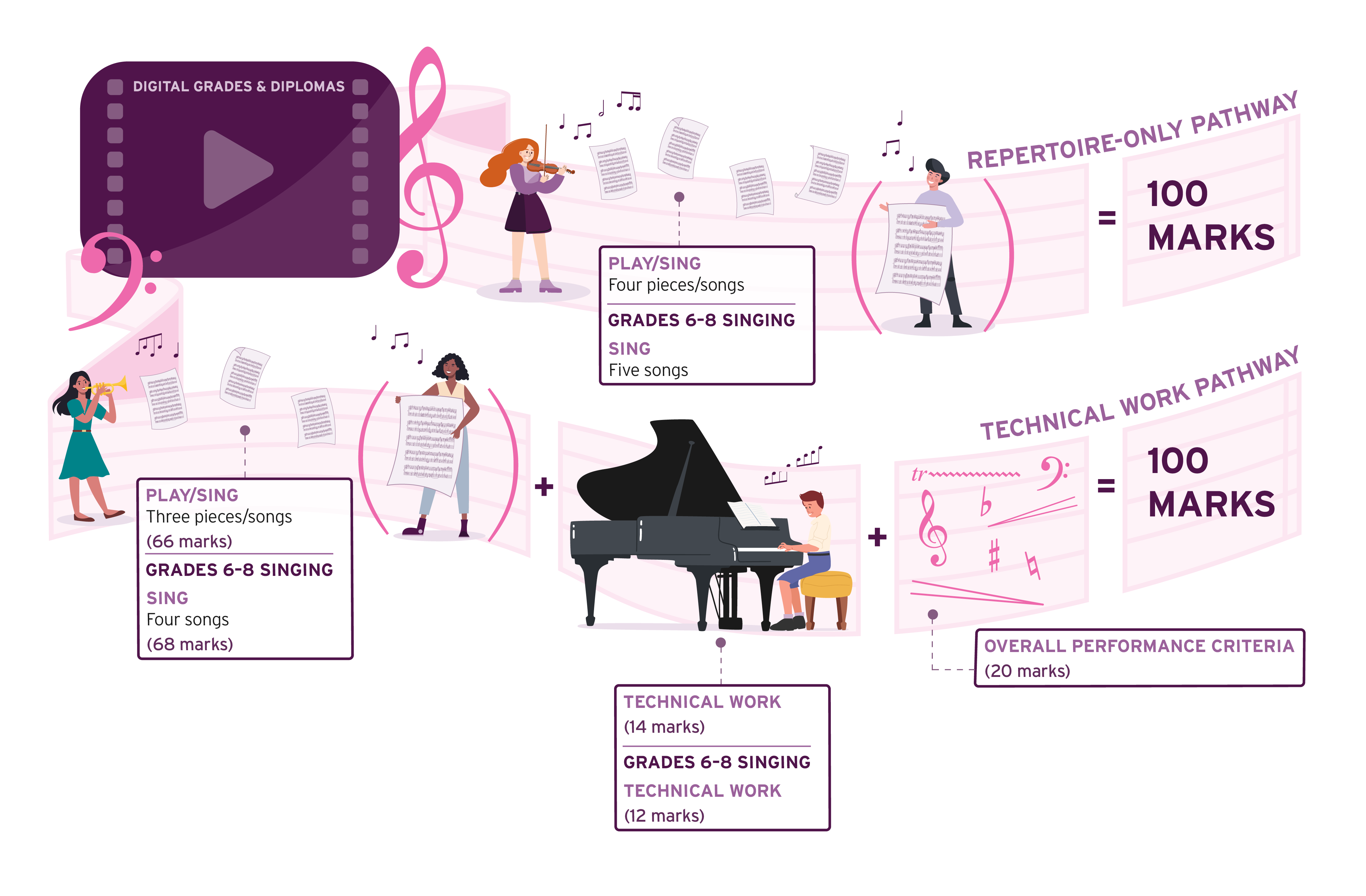 A new, pieces-only option for all candidates, bringing even further choice and flexibility to the Classical & Jazz Digital Grades. This offers a pathway for those who prefer to showcase their musical achievements through a programme of repertoire instead of a combination of pieces and technical work.