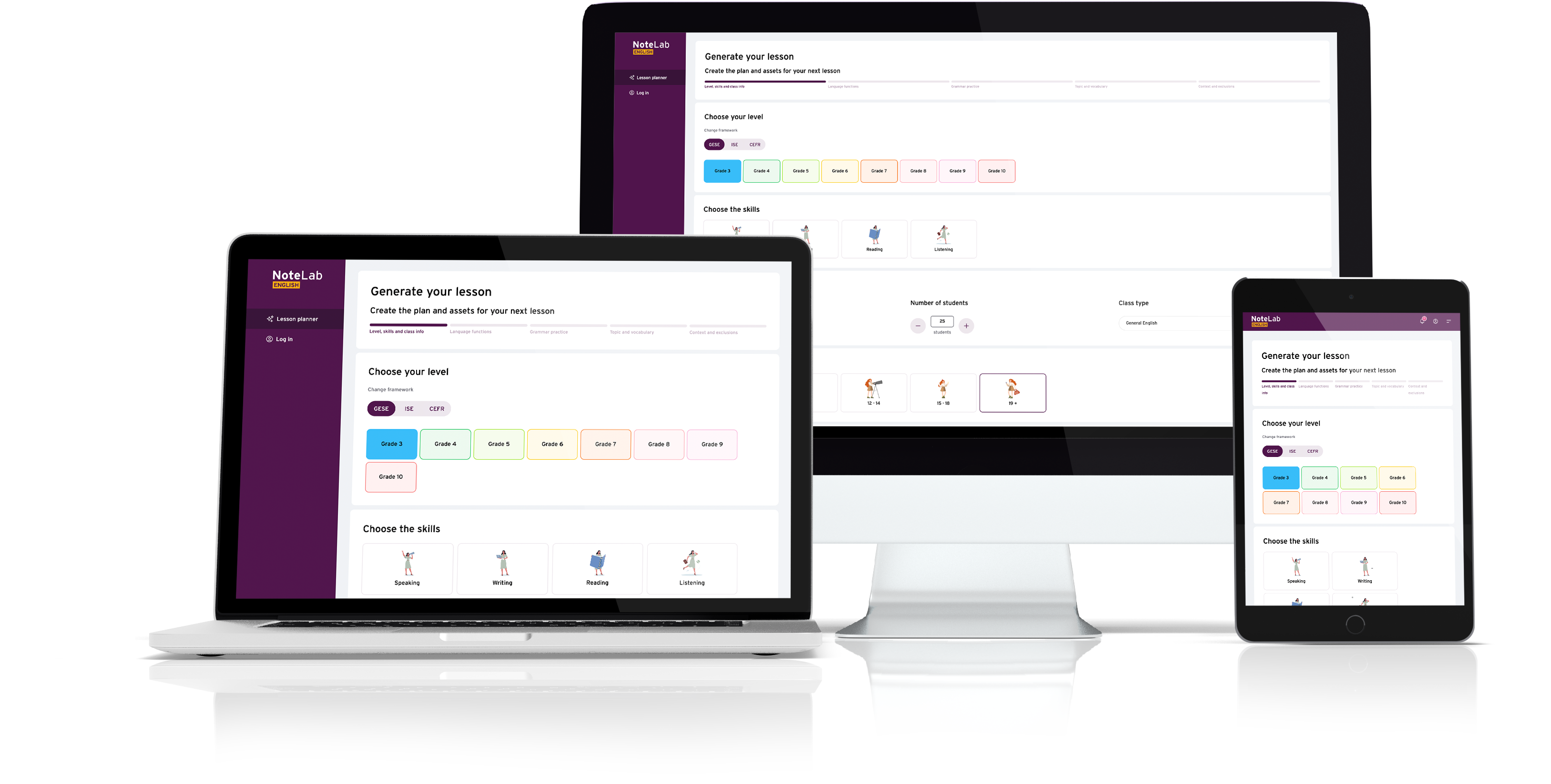 Revolutionise your English teaching with NoteLab English, your brand new lesson planning assistant. Save time, and create fresh, tailored, ready-to-use plans, based on the latest pedagogical thinking. Designed by teachers, for teachers, it’s free and just takes a few clicks!