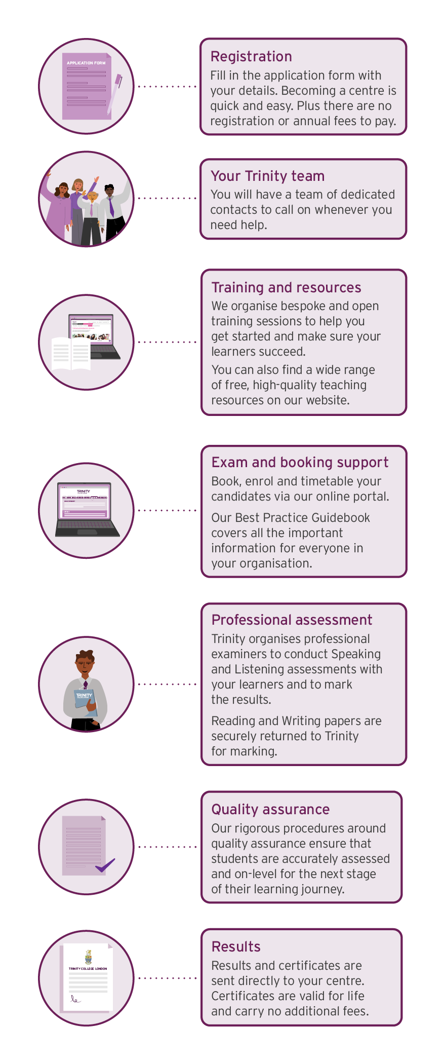Further information about becoming a Trinity Registered Exam Centre, including the relevant application form, can be found by clicking the link below.