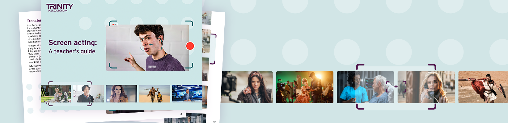 Whether you're currently offering screen acting courses at your Performing Arts Academy or are considering expanding your offer, you’ll find value in Trinity’s guide to teaching screen acting. Compiled with insights from Academy Principals, the free-to-access resource is packed with useful tips and advice to develop and assess key technical and performance skills, vital to success in future screen acting roles.